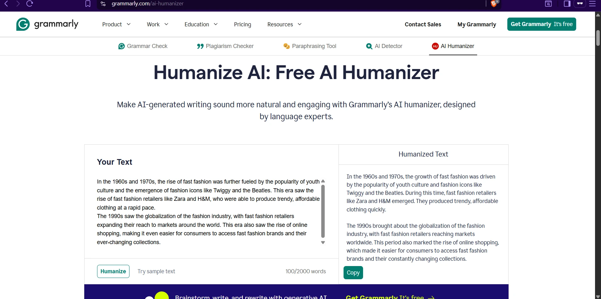 My opinion: If your goal is to appear thoroughly human to AI detectors, Grammarly’s humanizer is not the best tool. It can help polish your English, but for consistent AI-detection bypass you need a specialized humanizer or—best of all—good old-fashioned human editing.