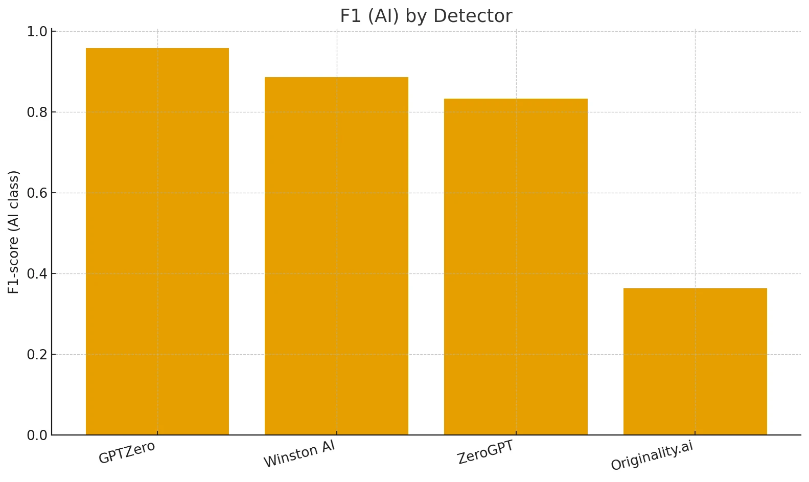 - Detecting “AI” ≠ “detecting Copilot specifically”: These tools look for typical AI markers, not for Copilot’s “brand.” High recall only means they catch Copilot as AI, not that they can identify it as Copilot uniquely.